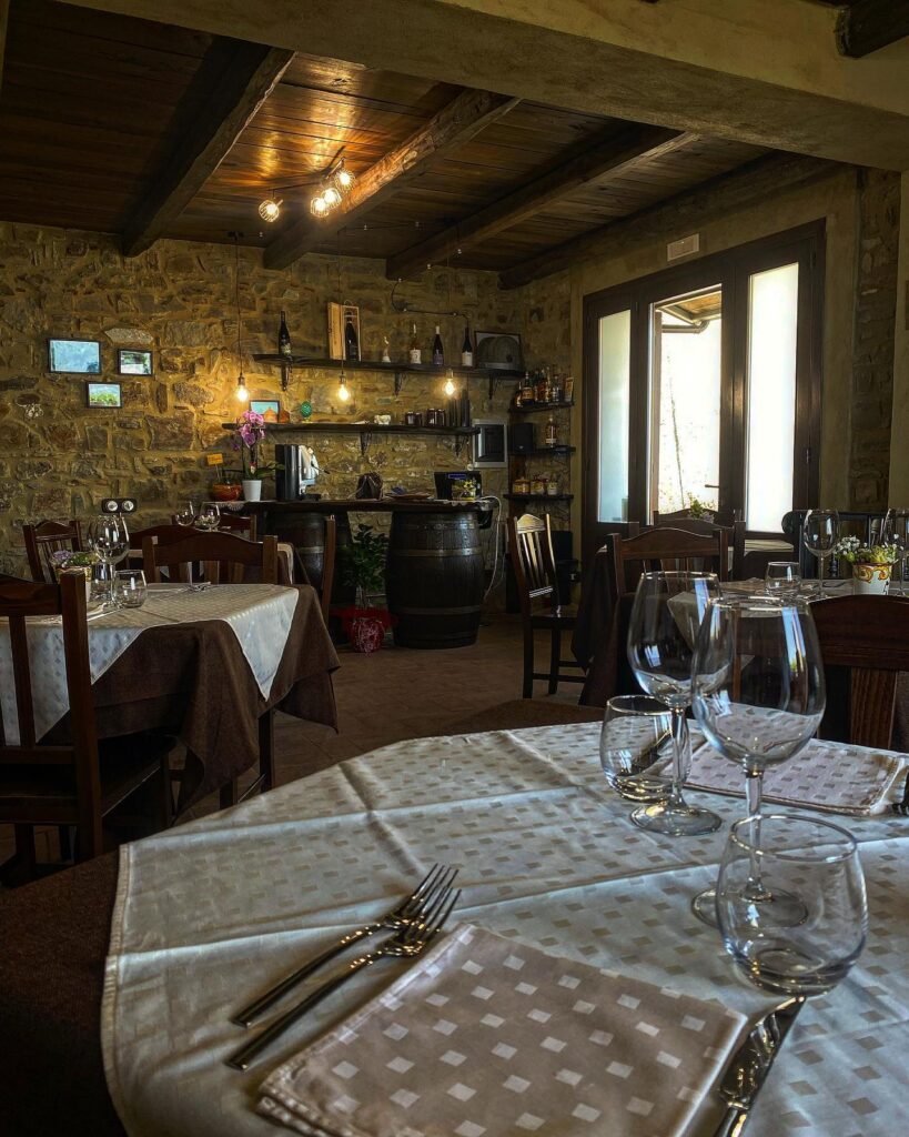 Circondati da materiali autentici e arredi rustici, ogni tavolo racconta una storia di tradizione e accoglienza. Il fuoco acceso nei mesi più freddi, la luce soffusa delle lanterne e il profumo del pane appena sfornato rendono l’esperienza unica, come in una casa di campagna d’altri tempi.